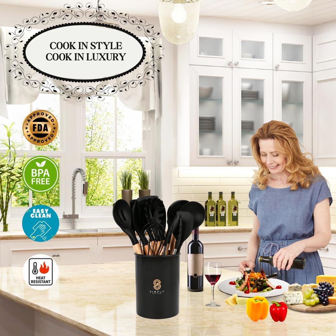 Silicone utensils are non-toxic, heat-resistant, and non-abrasive, ensuring safe cooking without scratching cookware.